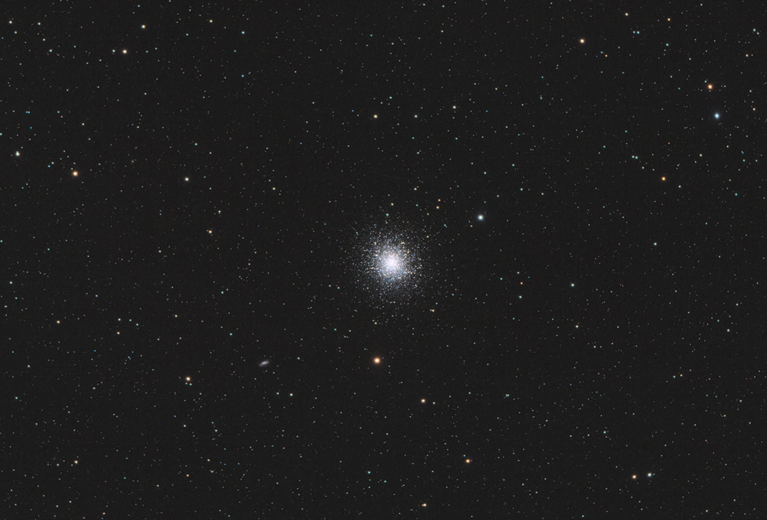 is about 145 light-years in diameter, and is composed of several hundred thousand stars, the brightest of which is a red giant. M13 is about 22,200 light-years away from Earth and can be visible to the naked eye depending on circumstances. With a low-power telescope, Messier 13 looks like a comet or fuzzy patch. Technical info: Processed in Astro Pixel Processor and Photoshop CS5 |