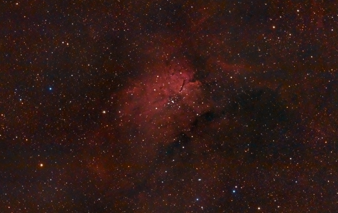 One of the most striking features are the pillars of dust and gas protruding from the east side of the nebula, these are active star forming regions. The open cluster NGC 6823 is about two million years old and predominantly represented by many young blue stars, although a great patch of young protostars are also present in the area.