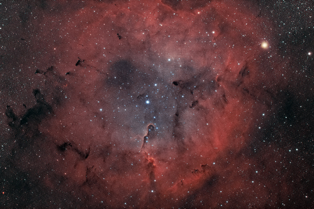 The Elephant's Trunk, (bottom) is a concentration of interstellar gas and dust within the much larger ionized gas region IC 1396, located in the constellation Cepheus about 2,400 light years away from Earth.