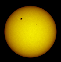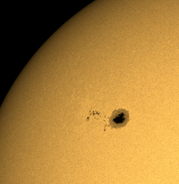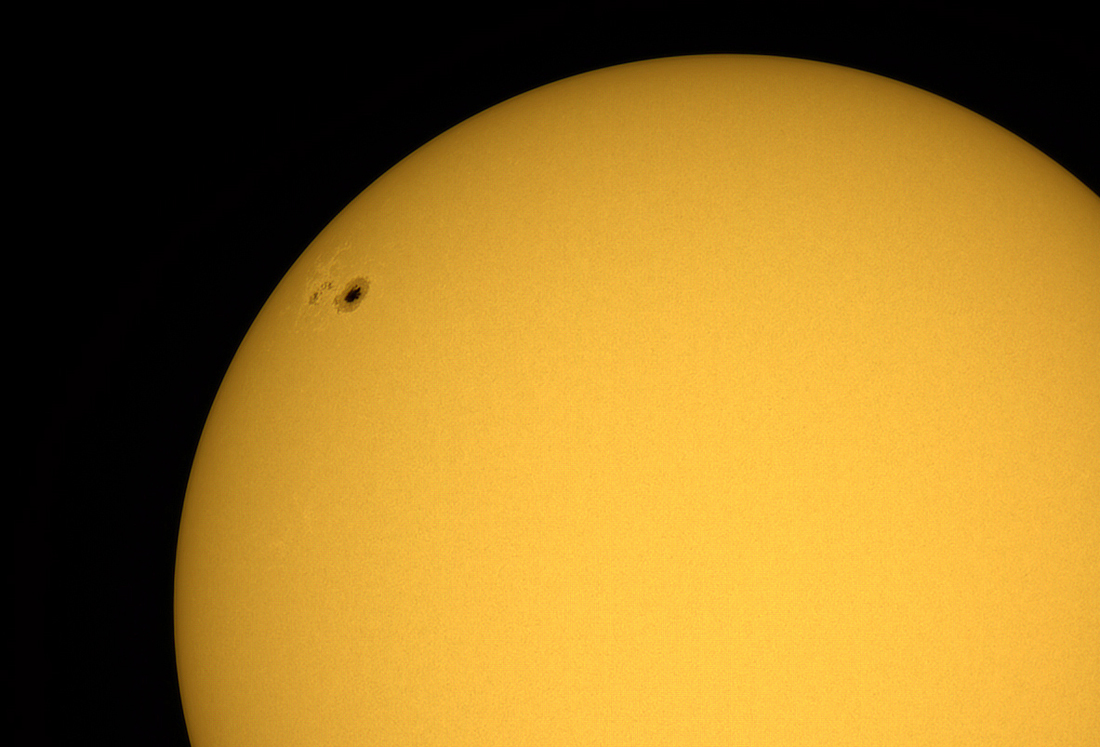 13 April 2016, the sunspot AR 2529 has recently appeared and is turning toward the Earth. Sunspot AR 2530 can be seen lower right. Sunspots are concentrations of reduced surface temperature, indicating intense magnetic activity.